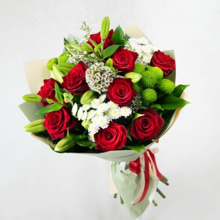 С чистого листа – Композиция с лилиями, пионовидными розами и пионами