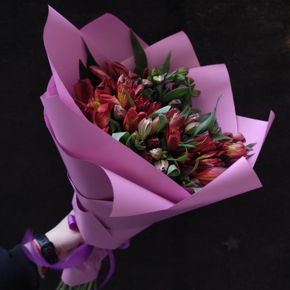 Альстромерия – 19 шт.Лента атласная – 1 шт.Упаковка матовая – 1 шт.