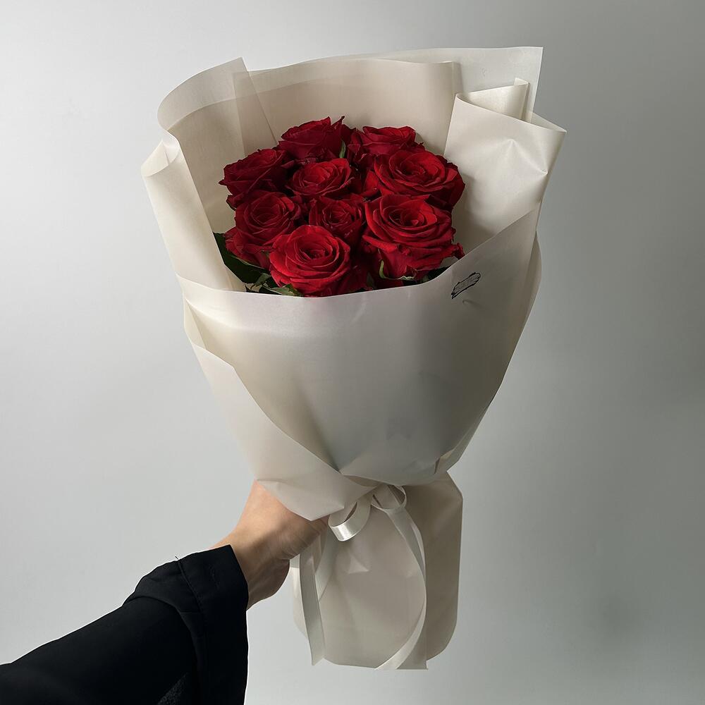 Класичний монобукет з 9 червоних троянд