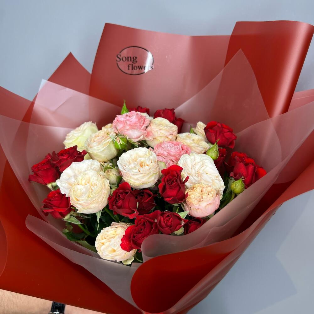 Кустовые розы, Лизиантусы, Пионы, Розы