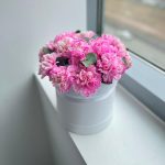 Шляпная коробка ярко-розовых гвоздик (N 145)