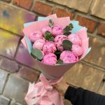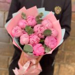 Эвкалипт – 5 шт.Лента атласная – 1 шт.Пион Сара Бернар – 11 шт.Упаковка дизайнерская – 1 шт.