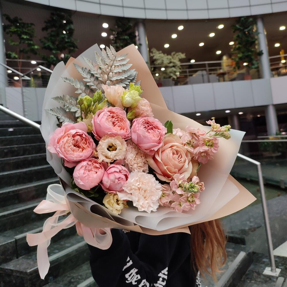 Категории: Гвоздики, Лизиантусы, Пионовидные розы, Розы