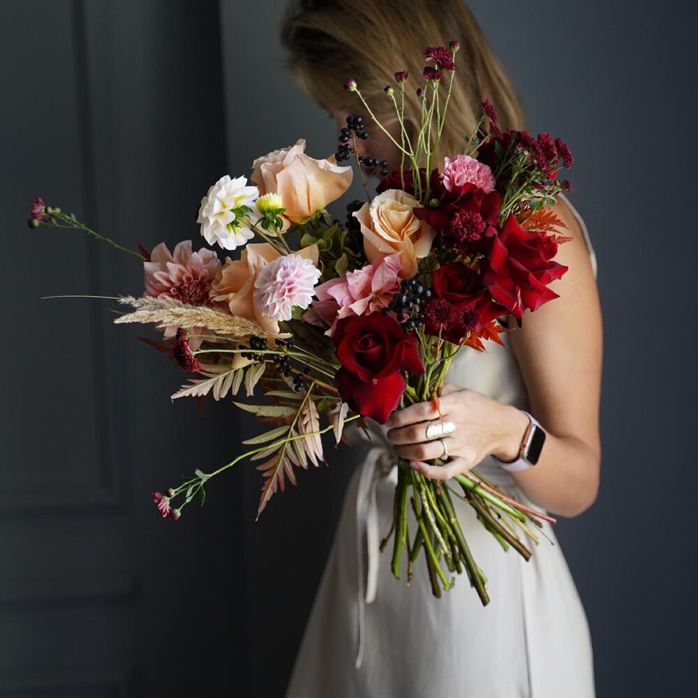 Кустовые розы, Лизиантусы, Розы, Сухоцвет