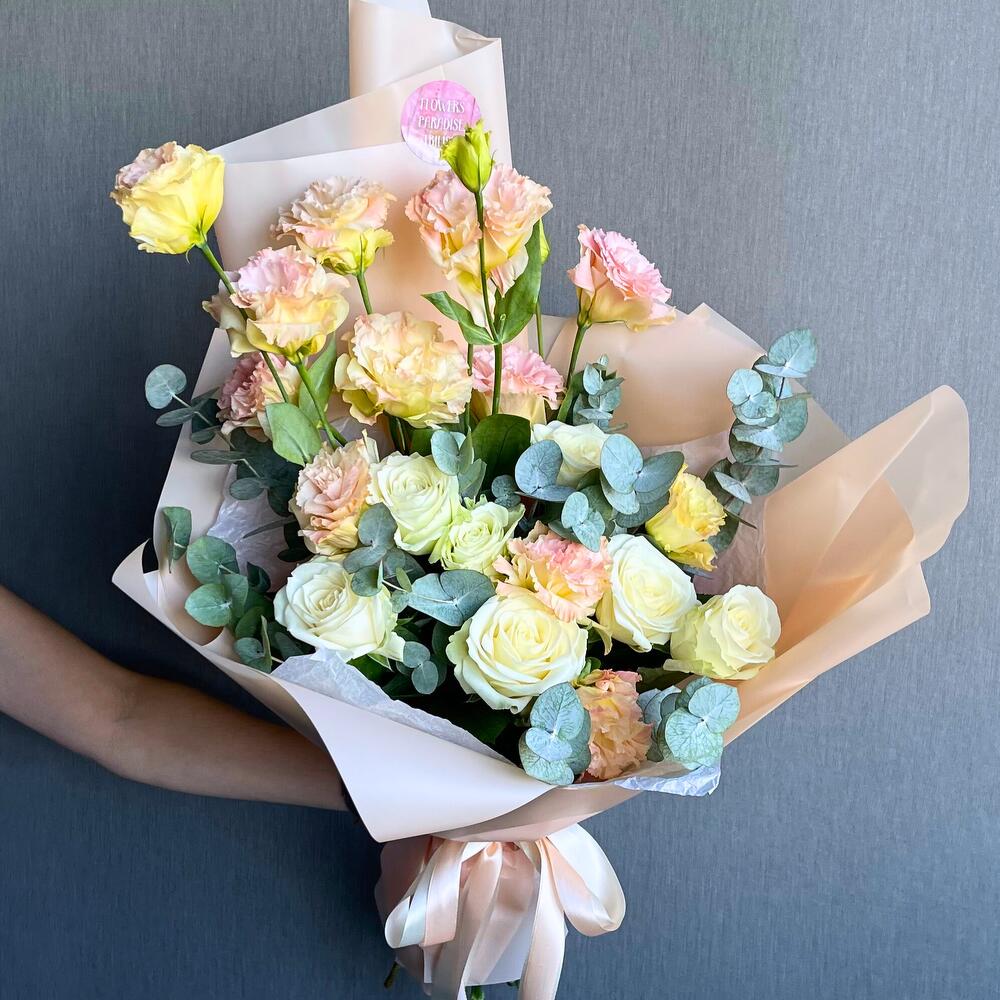 Категории: Лизиантусы, Розы, Эвкалипт, Эустома