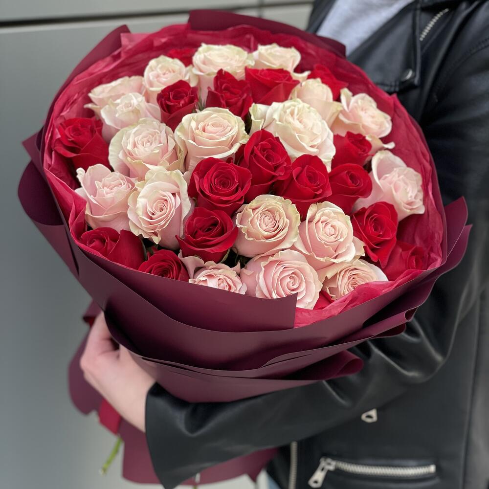 Букет из 37 роз микс (красных и розовых) в оформлении!