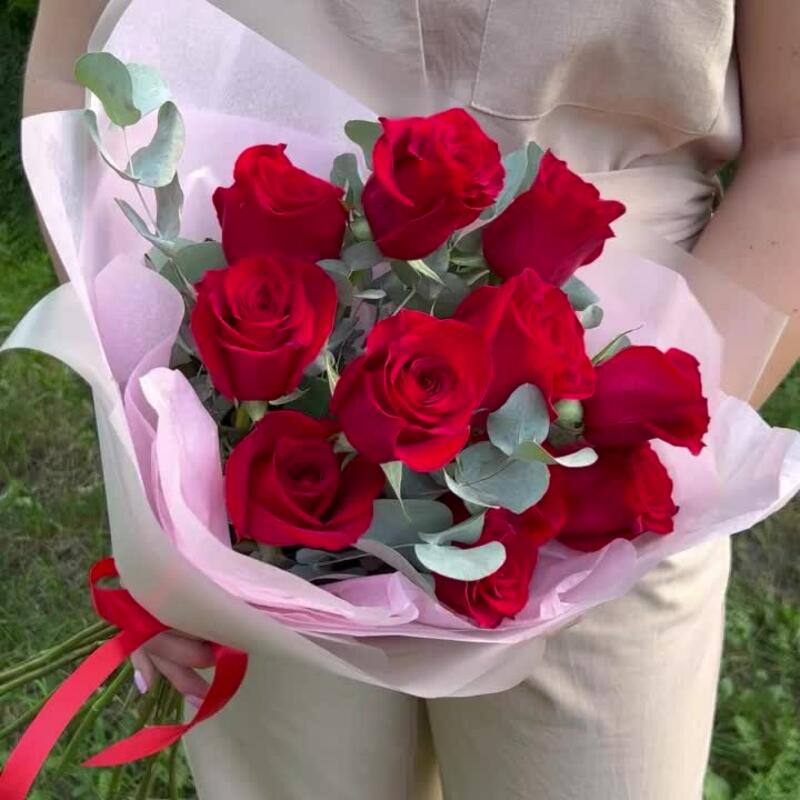 Букет из 11 Роз с эвкалиптом