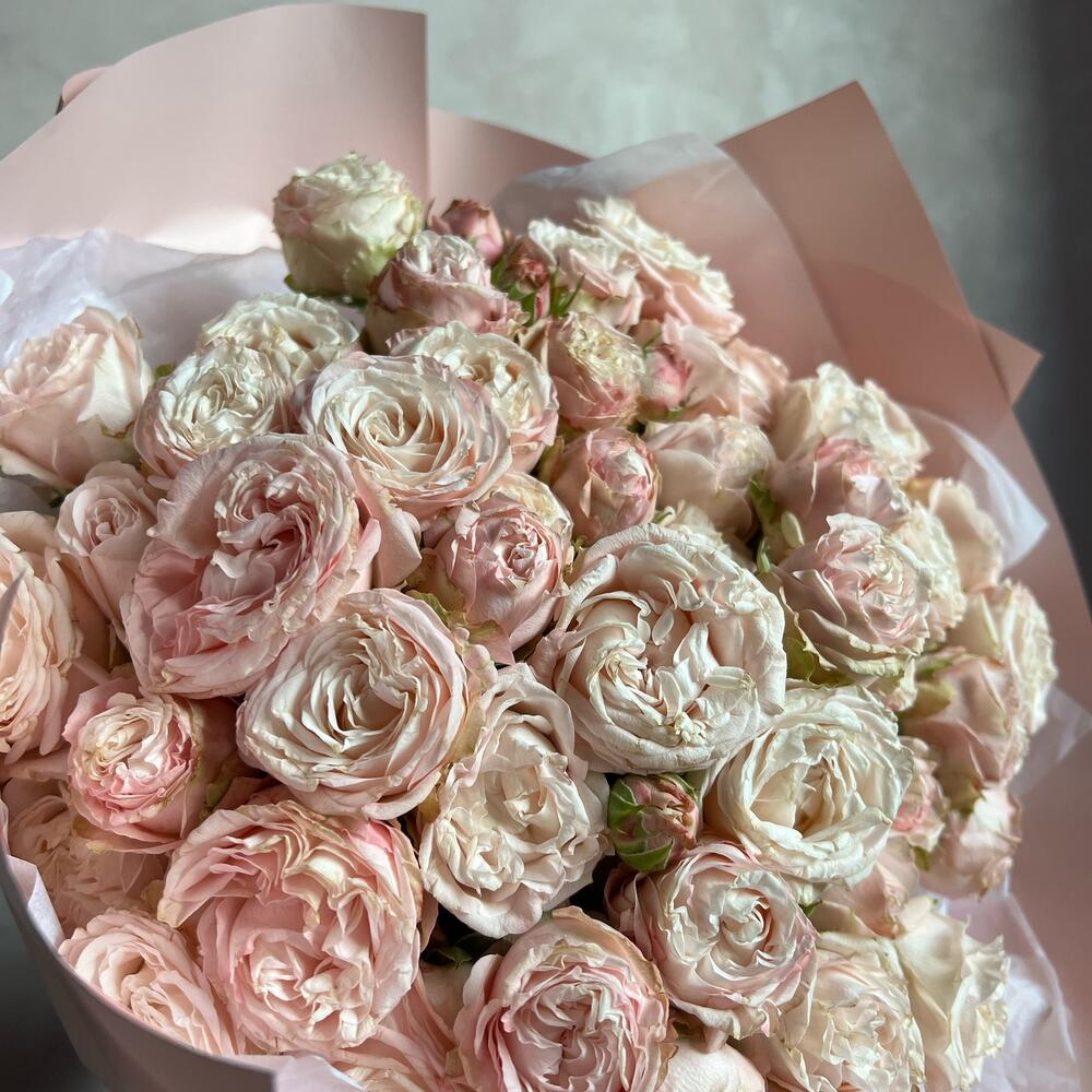 Кустовая пионовидная роза – 15 шт.декоративная упаковка – 1 шт.Атласная лента – 1 шт.