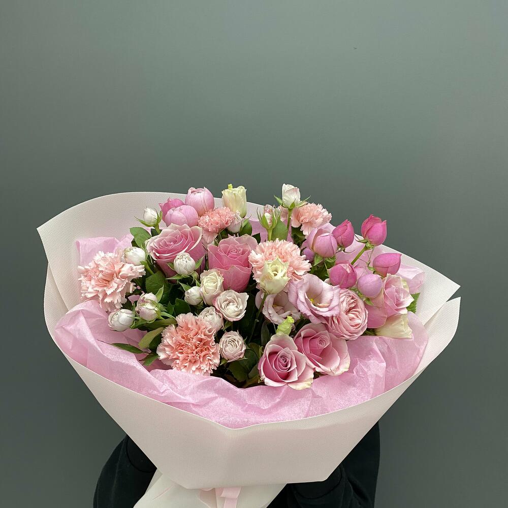 Альстромерии, Кустовые розы, Лизиантусы, Пионовидные розы, Розы, Ромашки