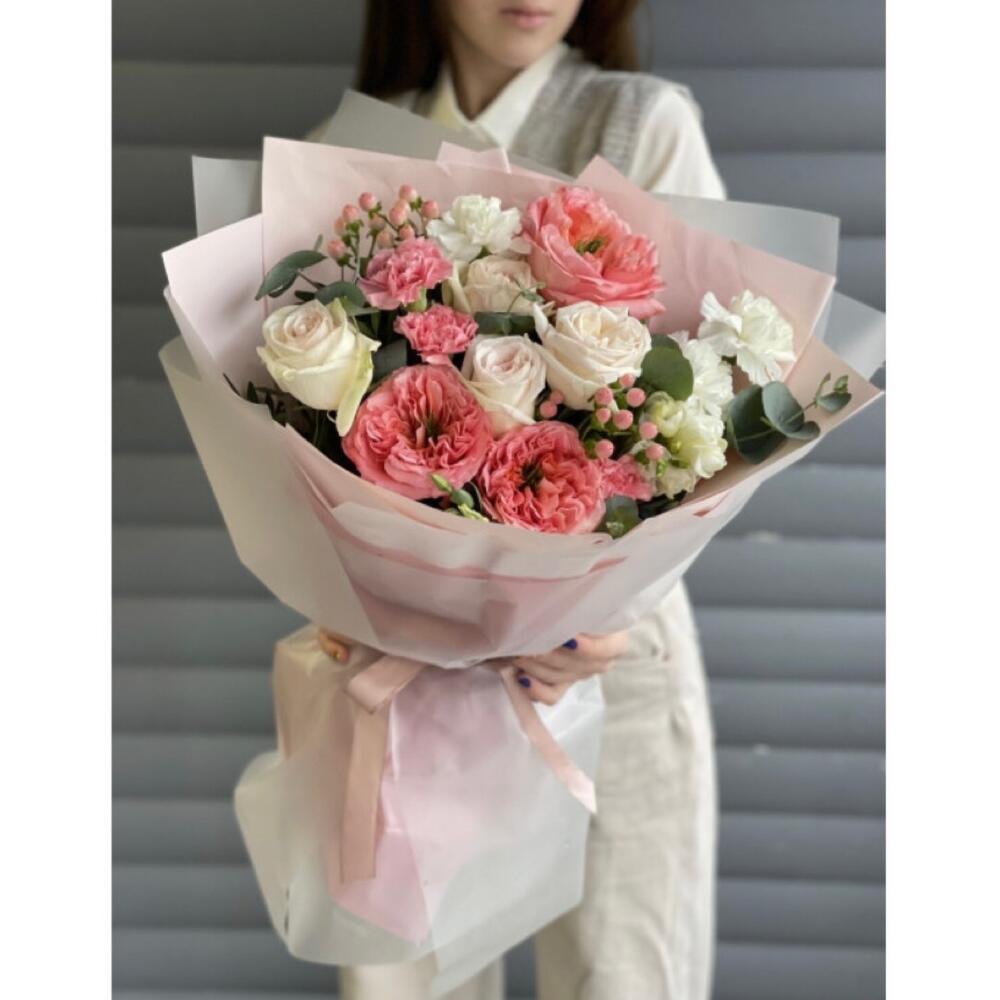 Гвоздики, Кустовые розы, Пионовидные розы, Розы