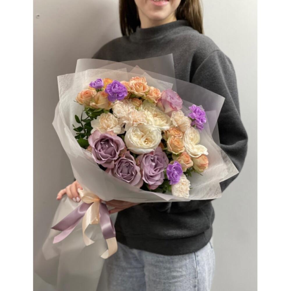 Гвоздики, Кустовые розы, Пионовидные розы, Розы