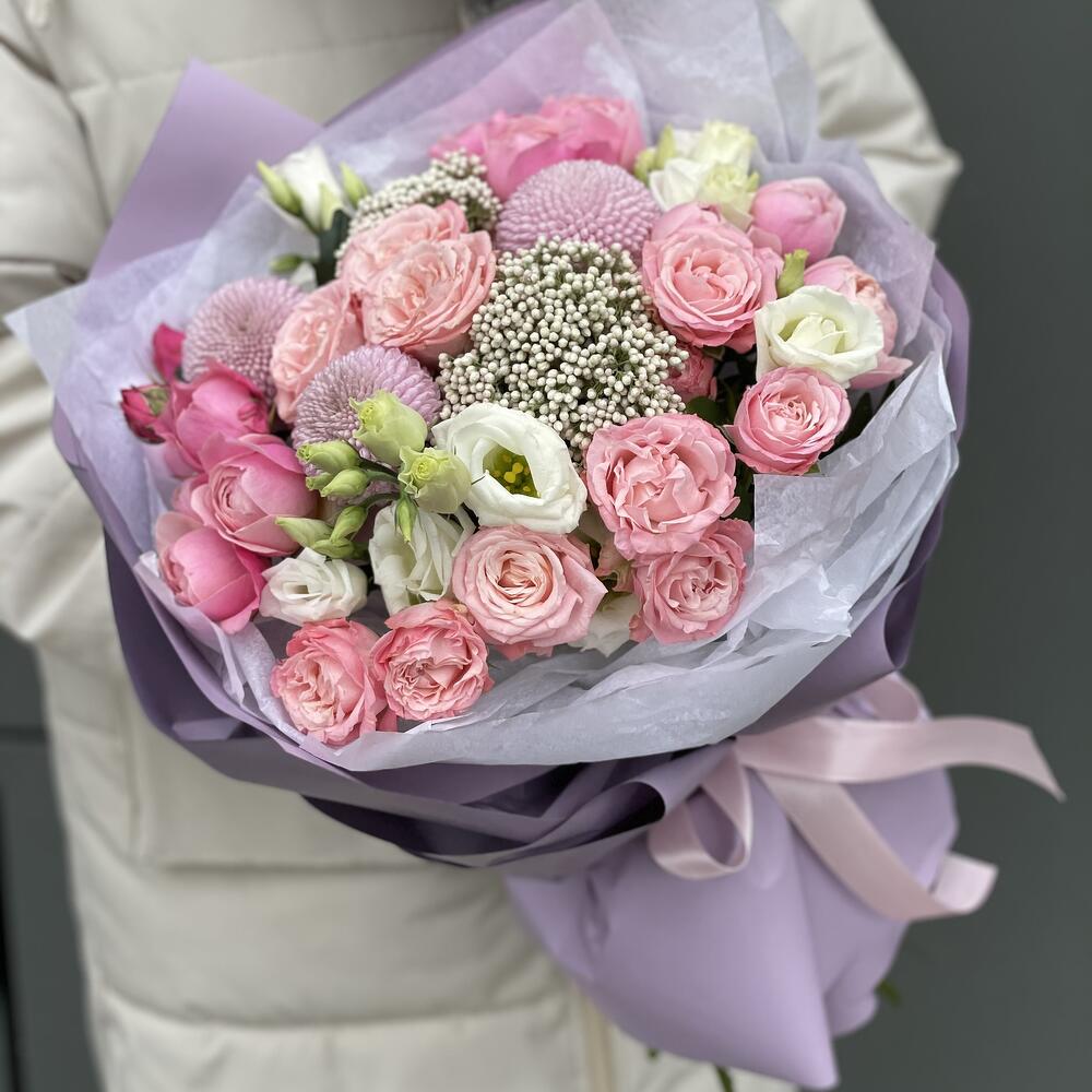 Букет Пудра из кустовой розы, эустомы и озотамнуса