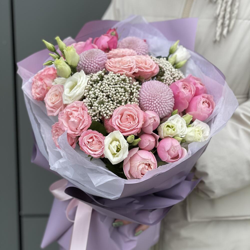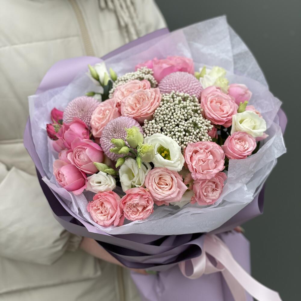 Категорий: Кустовые розы, Лизиантусы, Пионовидные розы, Розы, Хризантемы