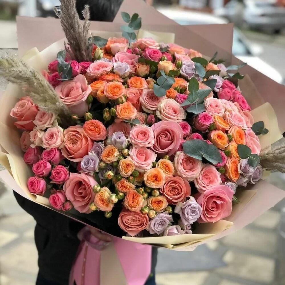 Гвоздики, Кустовые розы, Лизиантусы, Пионовидные розы, Розы