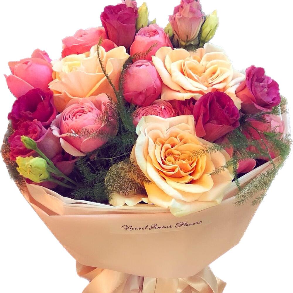 Гвоздики, Кустовые розы, Пионовидные розы, Розы