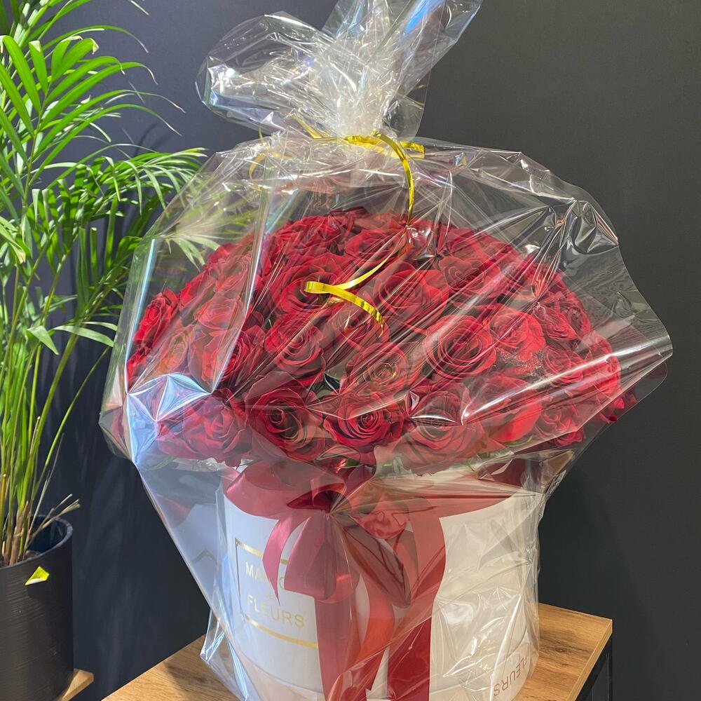 Метки: 101 роза, от 5000 руб, Роза 30 см, Розы в коробке, цветы в коробке