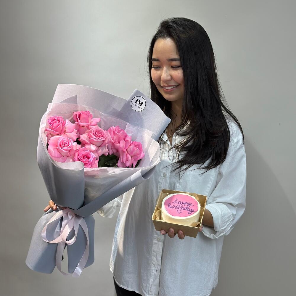 Комбо 7 роз + бенто торт