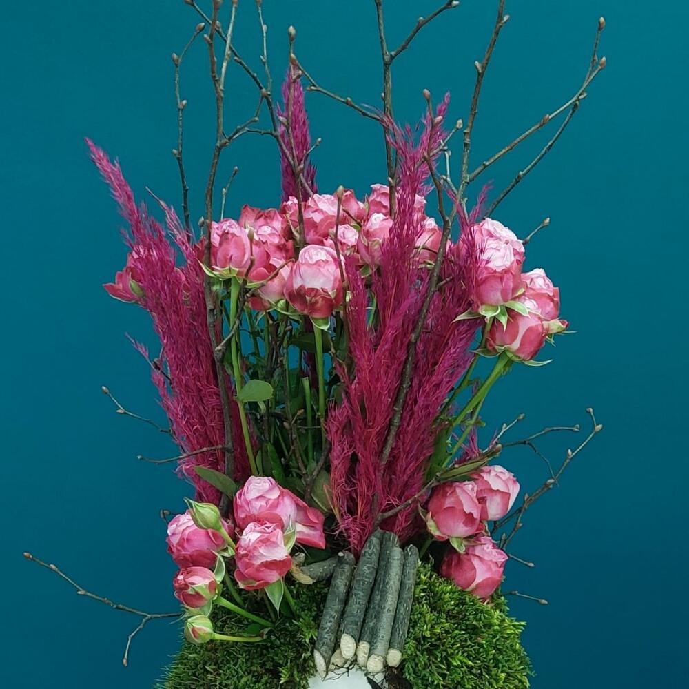 Гвоздики, Кустовые розы, Лизиантусы, Пионовидные розы, Розы