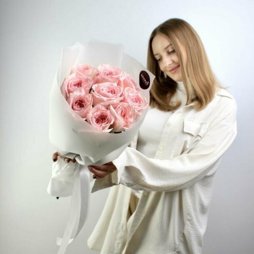 Пышные и ароматные эквадорские сортовые розы в дизайнерской упаковке
