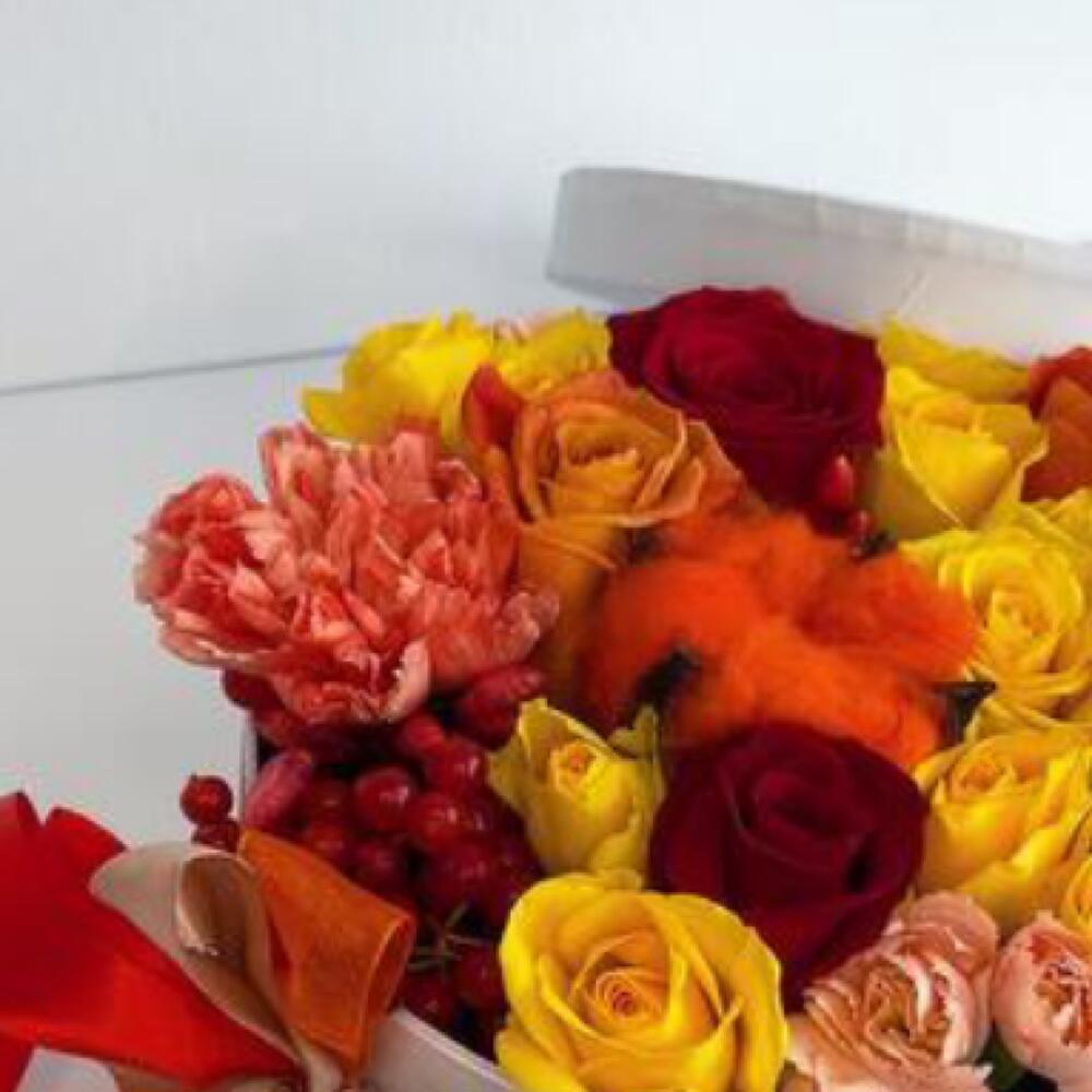 Стильная яркая ,сочная композиция из роз на флористическом оазисе в коробке .Уважаемые покупатели! Пожалуйста обратите ваше внимание на размер композиции при заказе! Он учитывается вместе с упаковкой Чтобы наши прекрасные композиции дольше радовали получателя рекомендуем вам:⭐Не вынимать цветы из коробки/корзинки⭐Поливать композицию каждый день (воду нужно вливать в центр, чтобы вода правильно распределилась) ⭐Не ставить цветы у отопительных приборов и на сквозняке