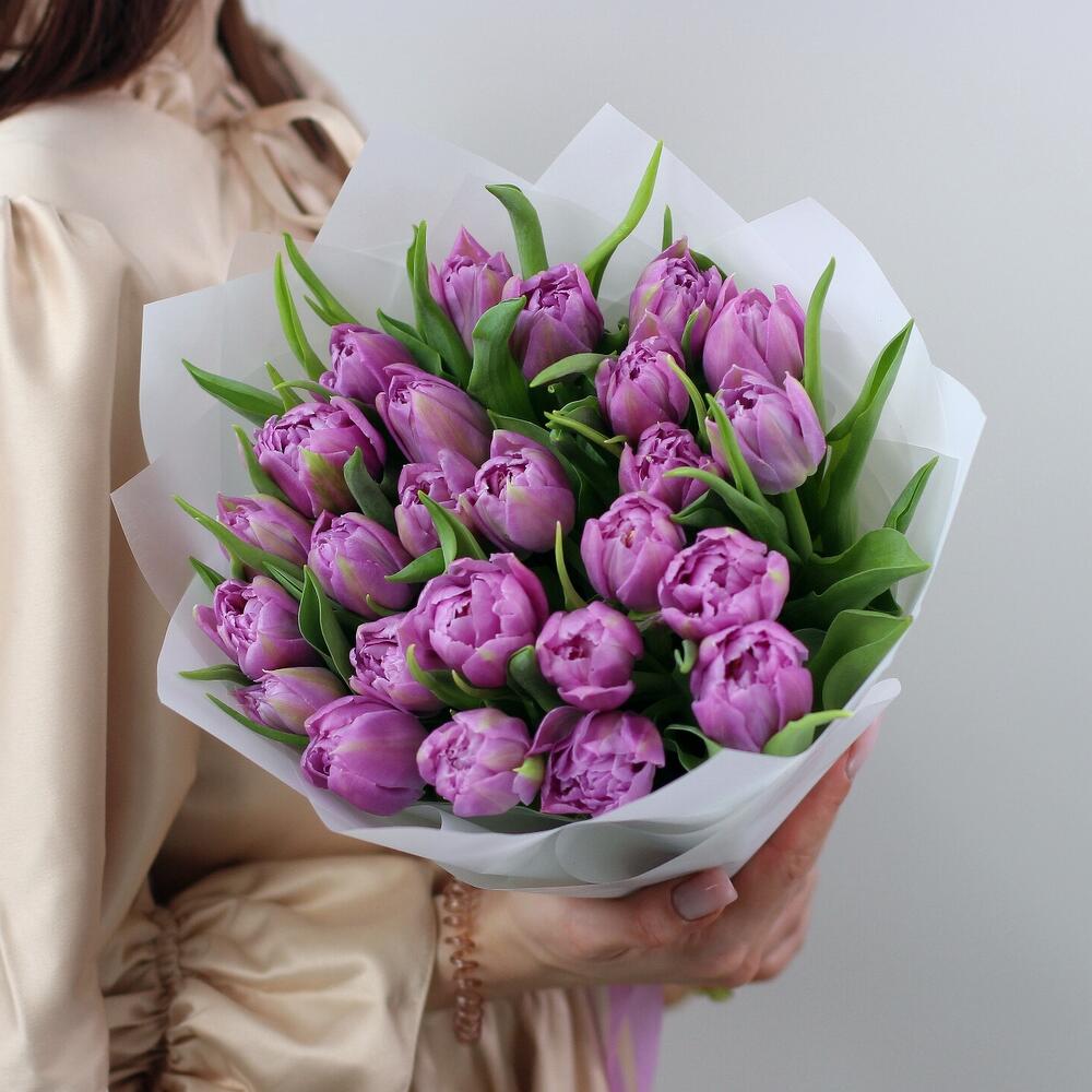 25 пионовидных сиреневых тюльпанов дабл прайс. Букет 200 Kimbirly Flowers